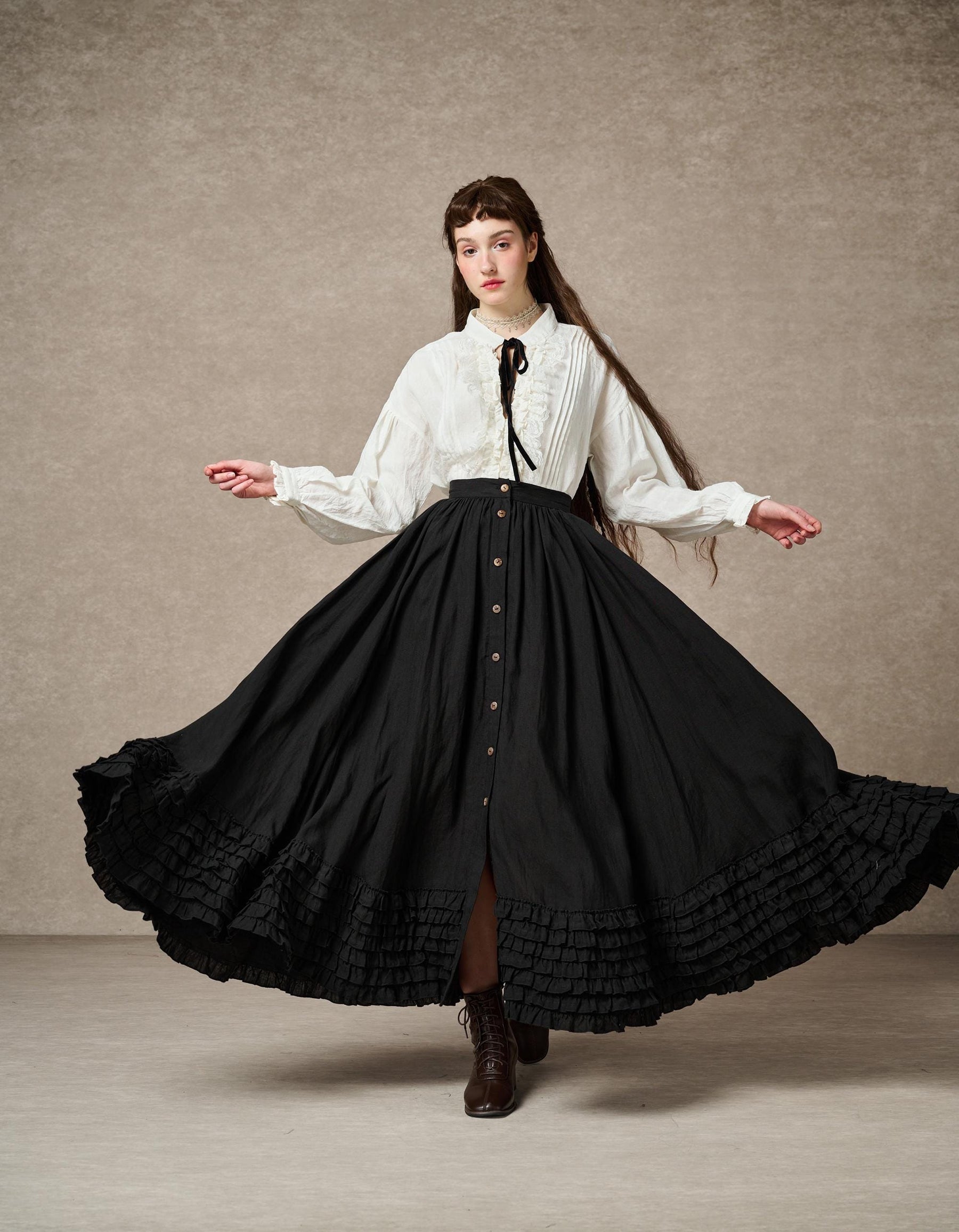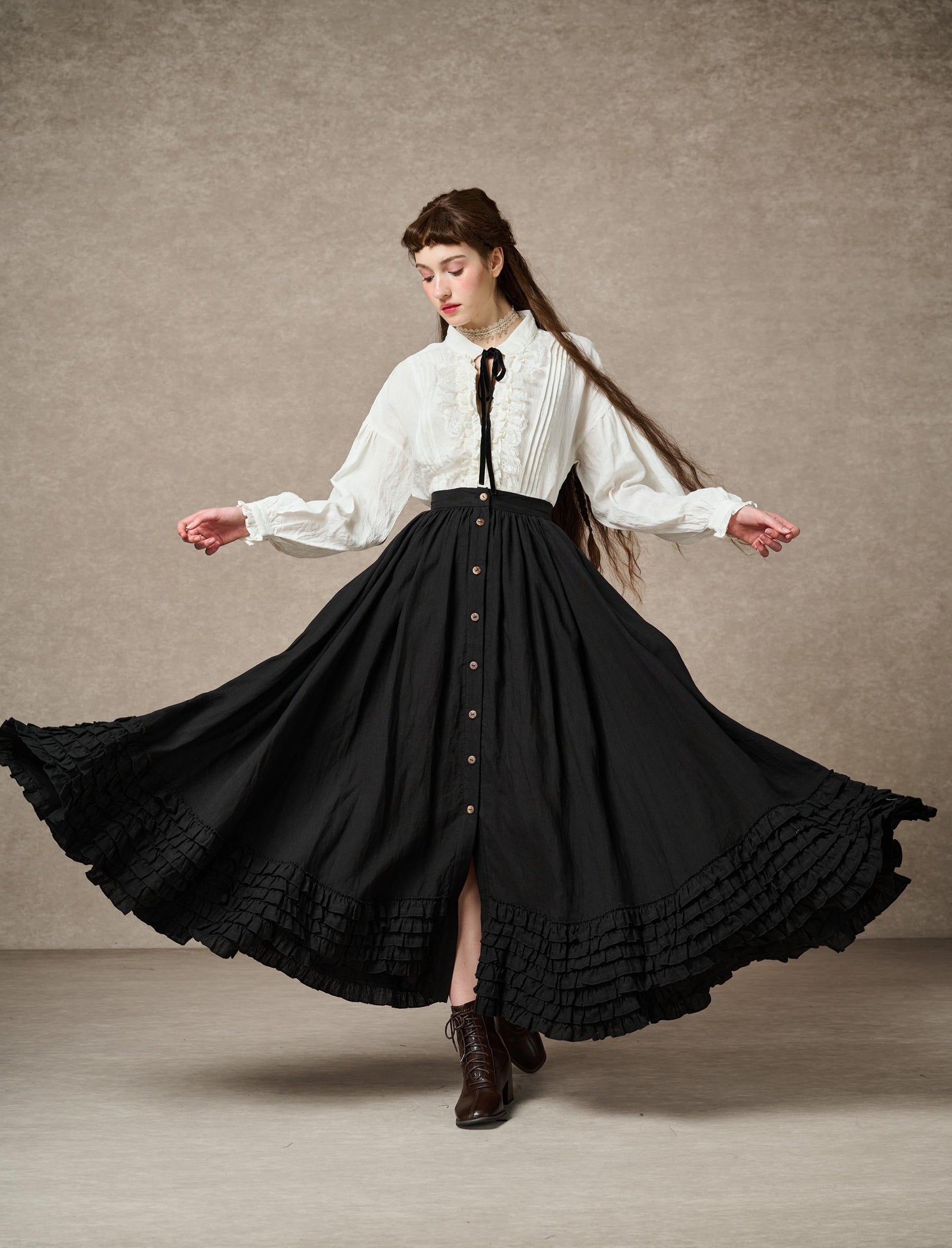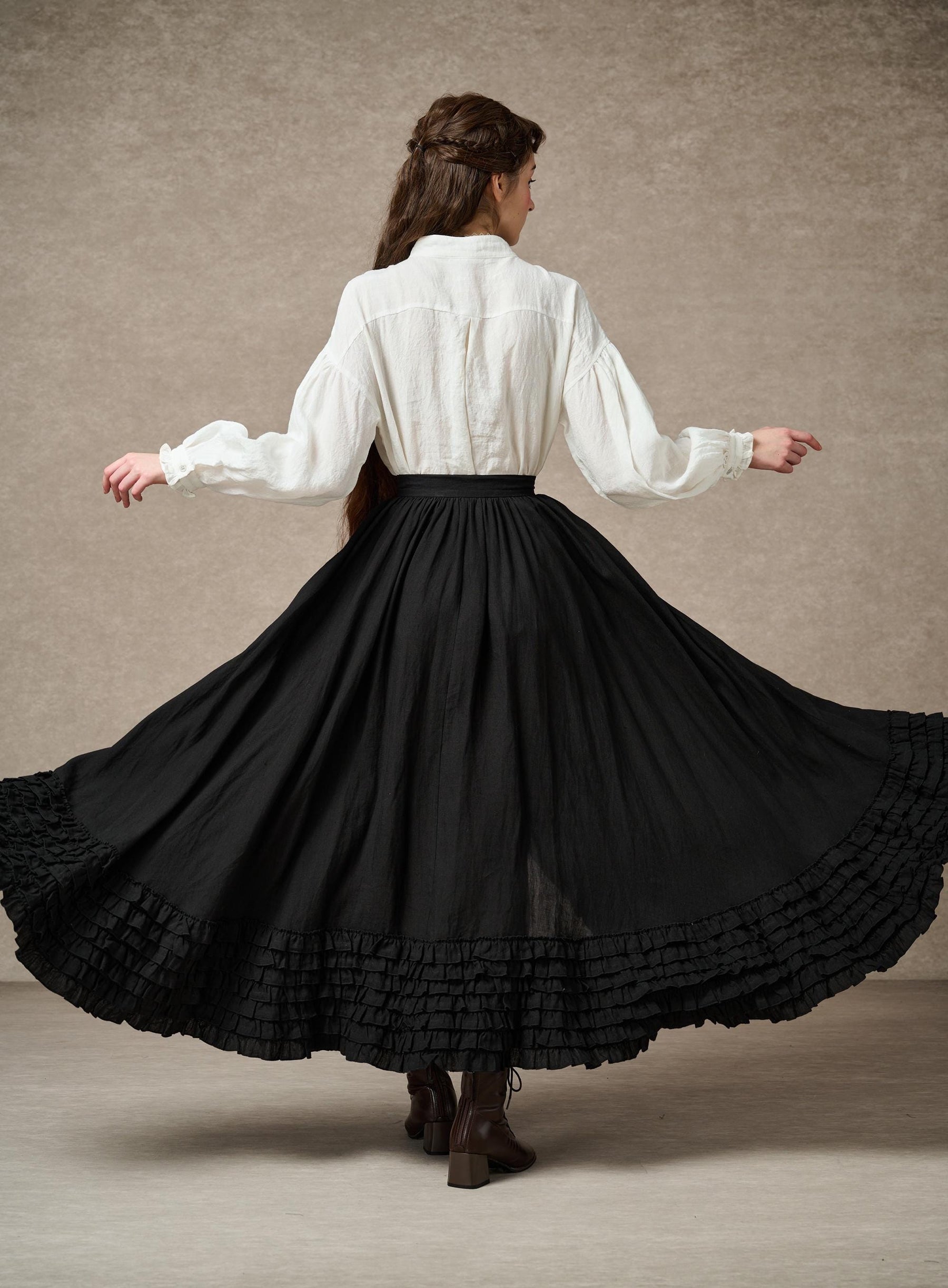 ADL.2000-41 DOROTHY RUFFLED MAXI LINEN SKIRT