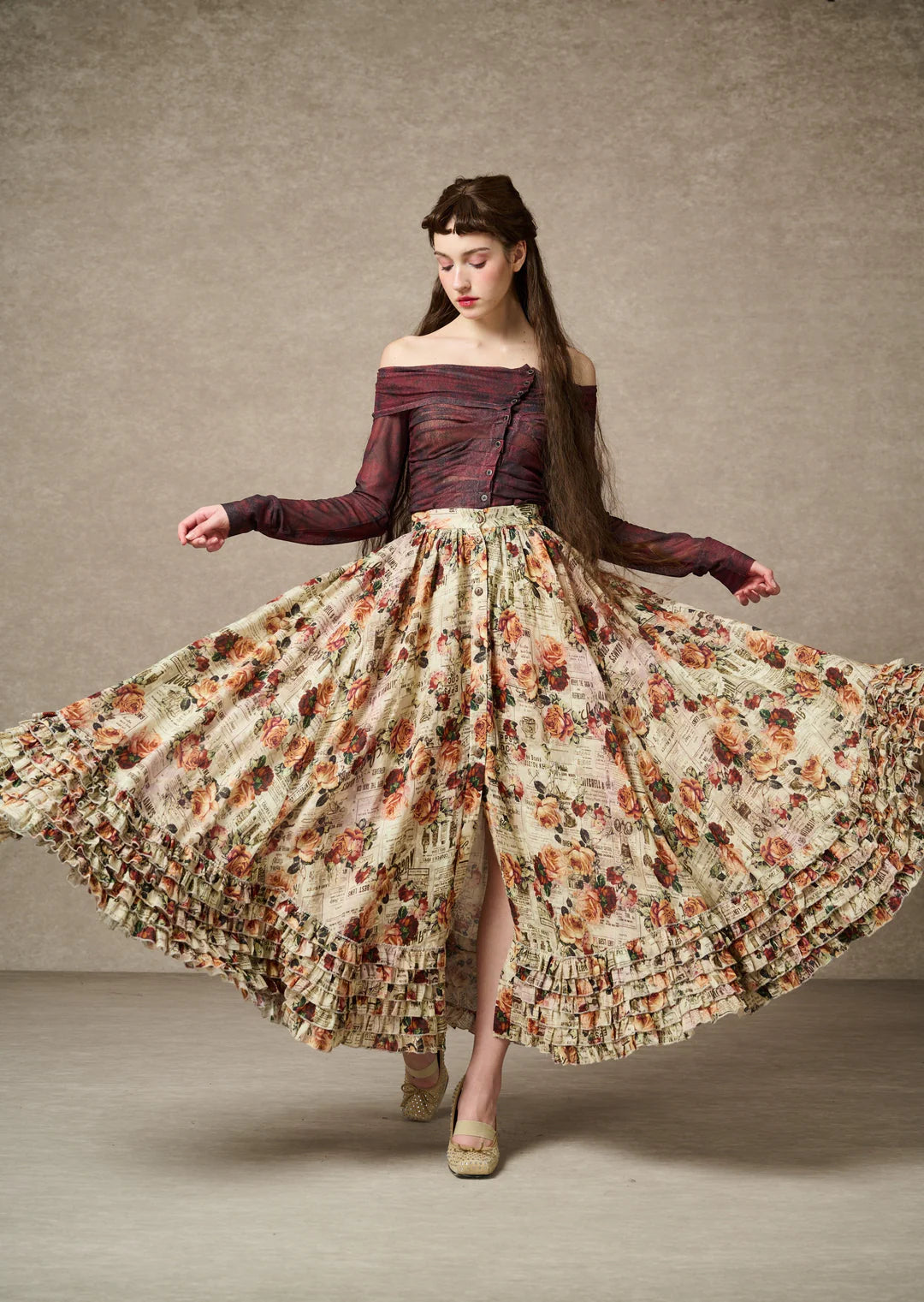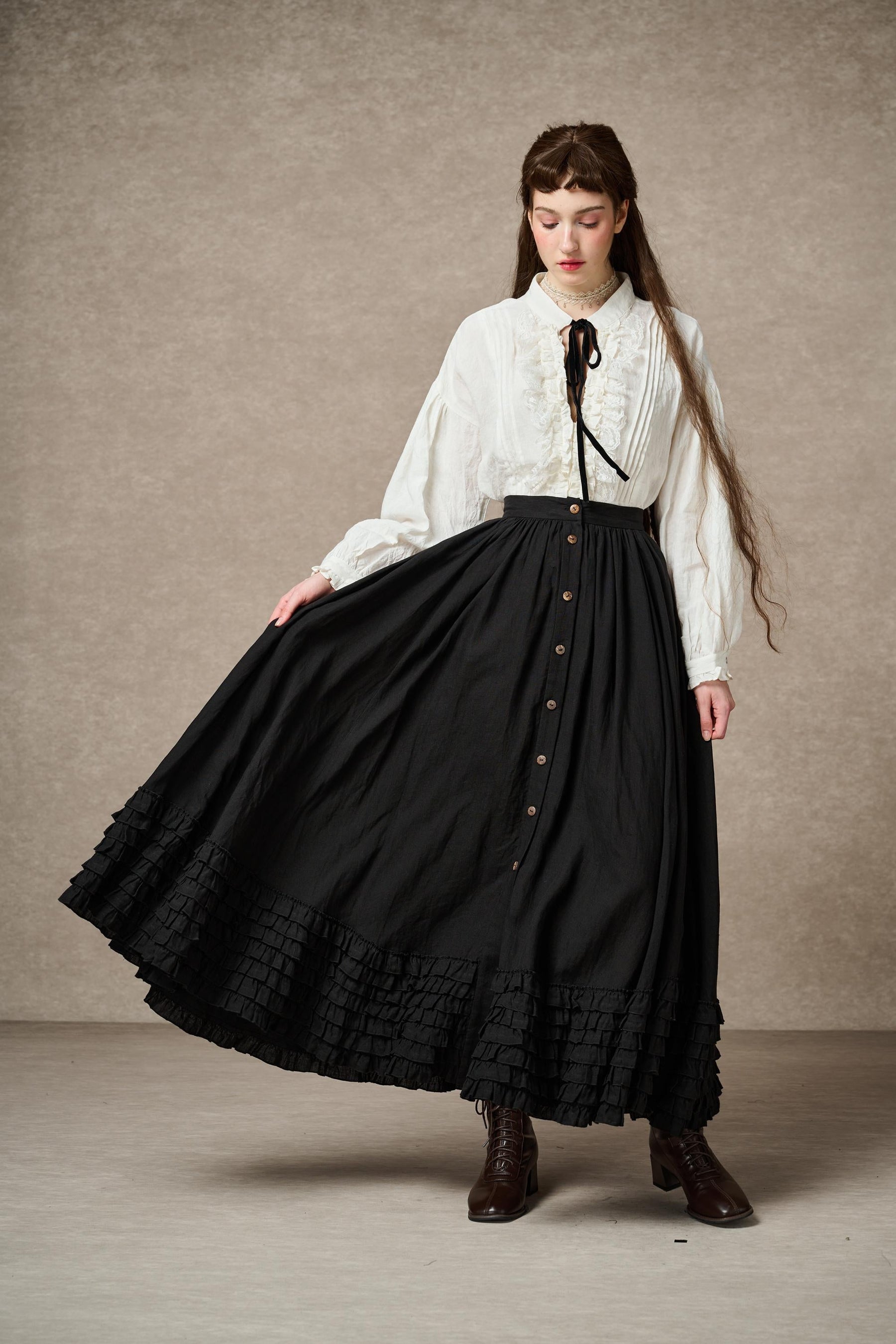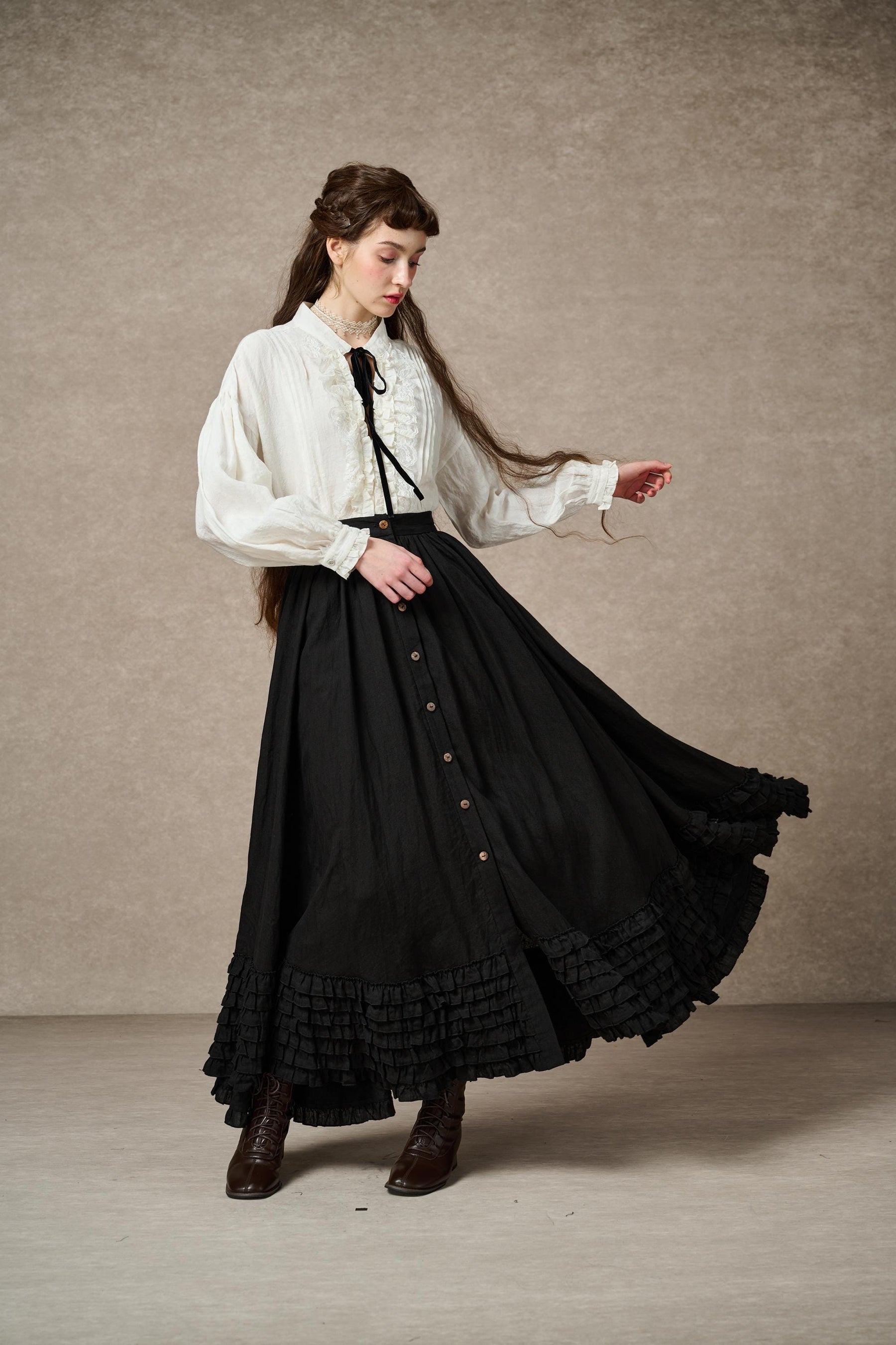 ADL.2000-41 DOROTHY RUFFLED MAXI LINEN SKIRT