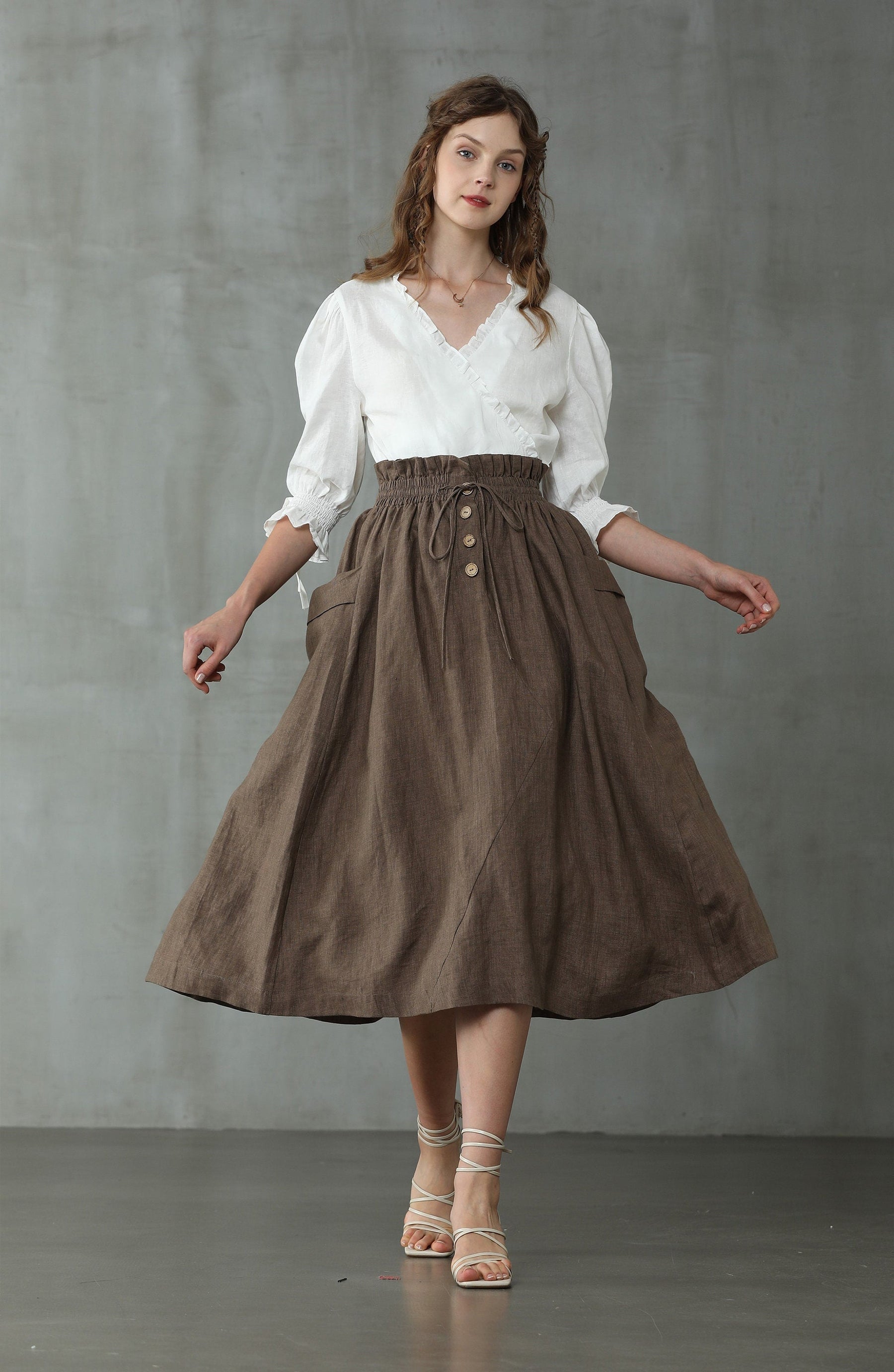 it is silky linen. So it become more flattering and flowy.