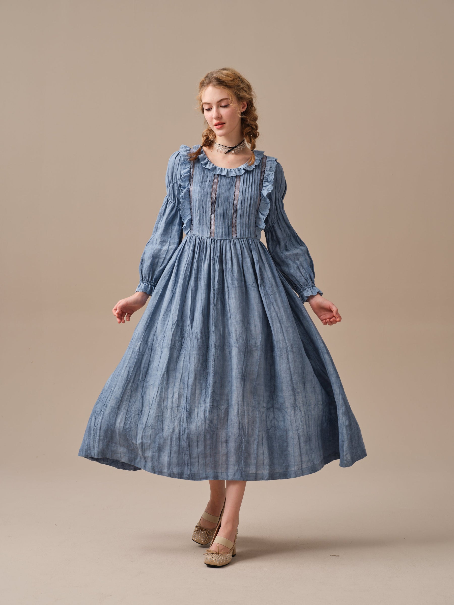 JASMINE ROMANTIC LINEN DRESS WITH FRENCH LACE