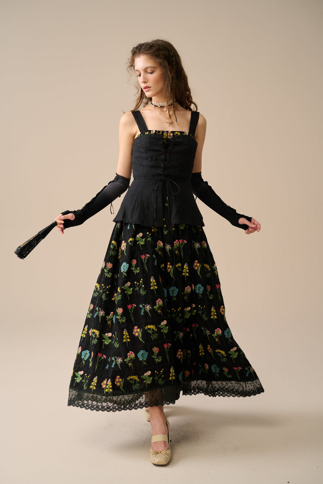 You'll be the centre of attention in this chic black floral dress, with colourful embroidered flowers that come to life and exude sophistication and mystery.